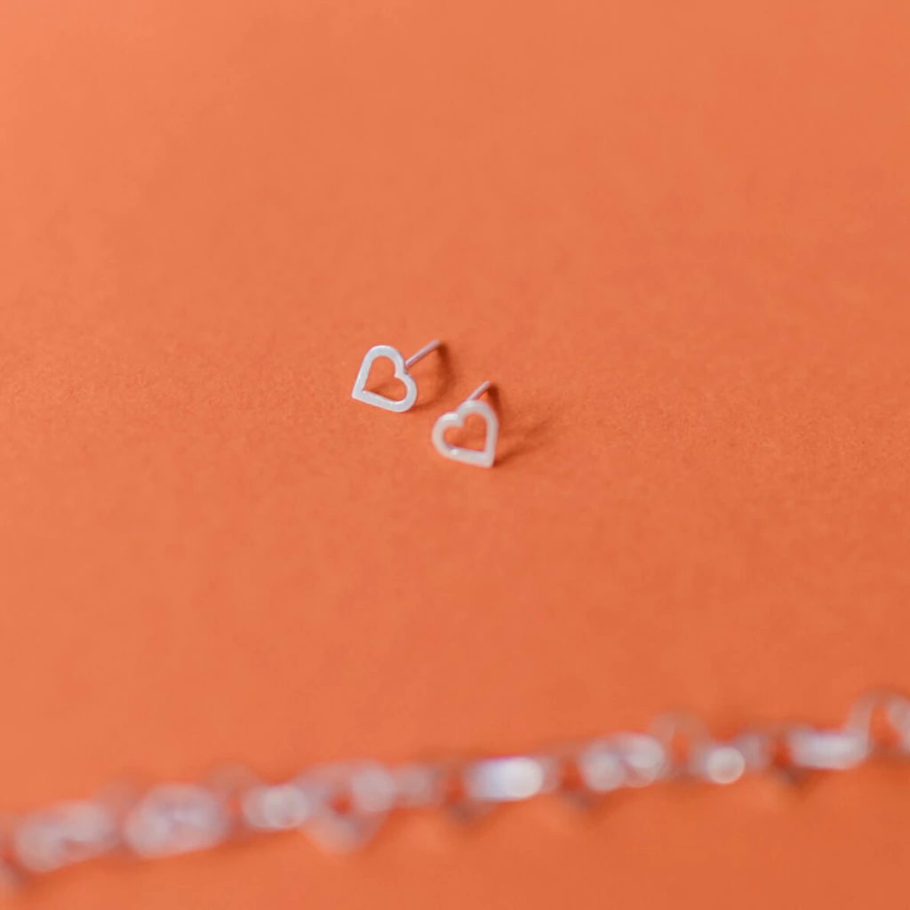 Podés elegir dos modelos de aros Corazones: el corazoncito fijo a la oreja o una cadenita de seis corazones con gancho pasante.